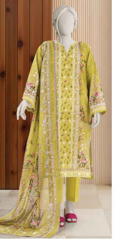 Elevate your style with this premium unstitched 3-piece suit. Featuring a 1.75m printed lawn shirt, 2.50m printed lawn dupatta, and 1.80m dyed cambric trouser, this ensemble offers elegance and comfort for every occasion. Perfect for creating a customized look